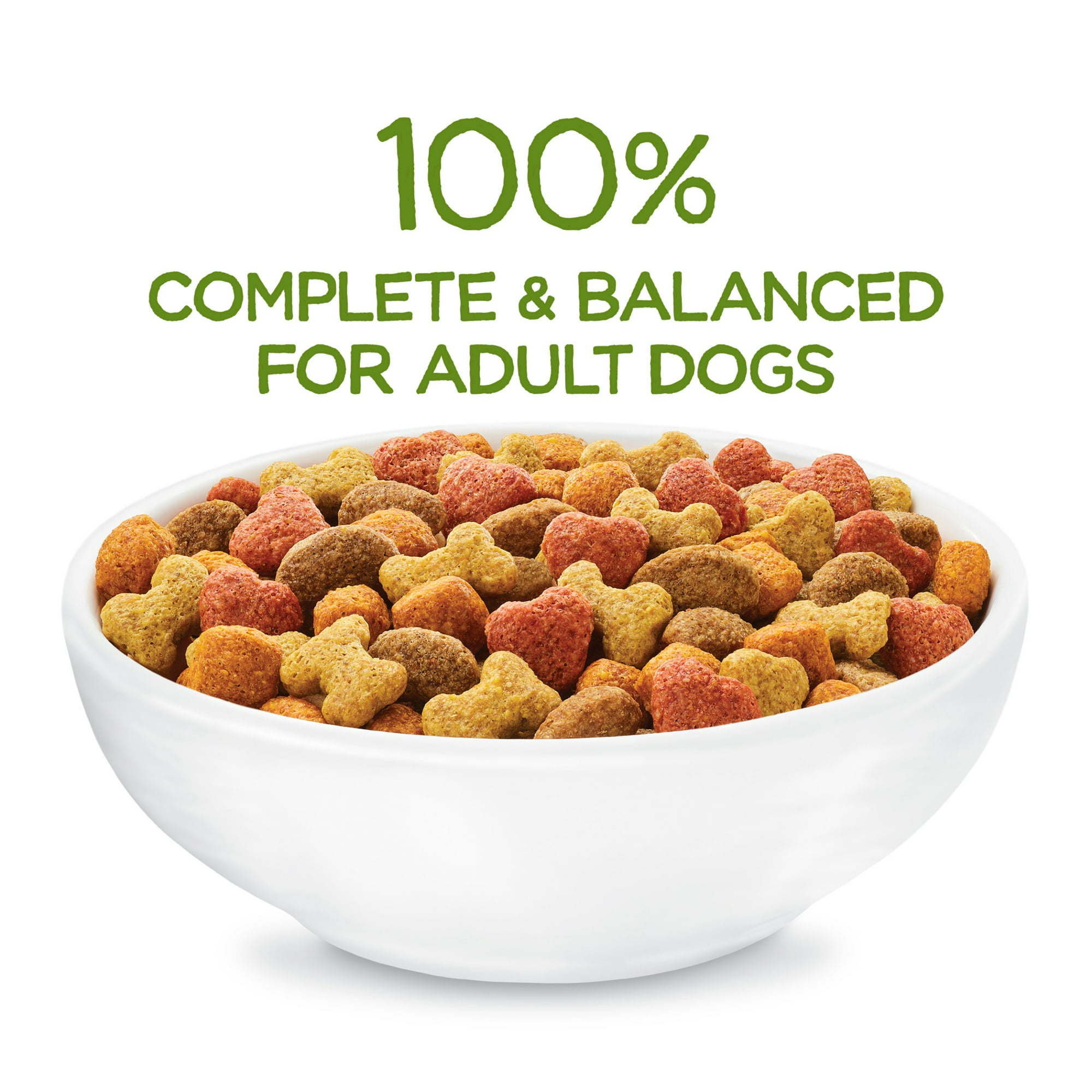 Our 100 percent complete and balanced adult dog food kibble includes 23 essential vitamins and minerals.